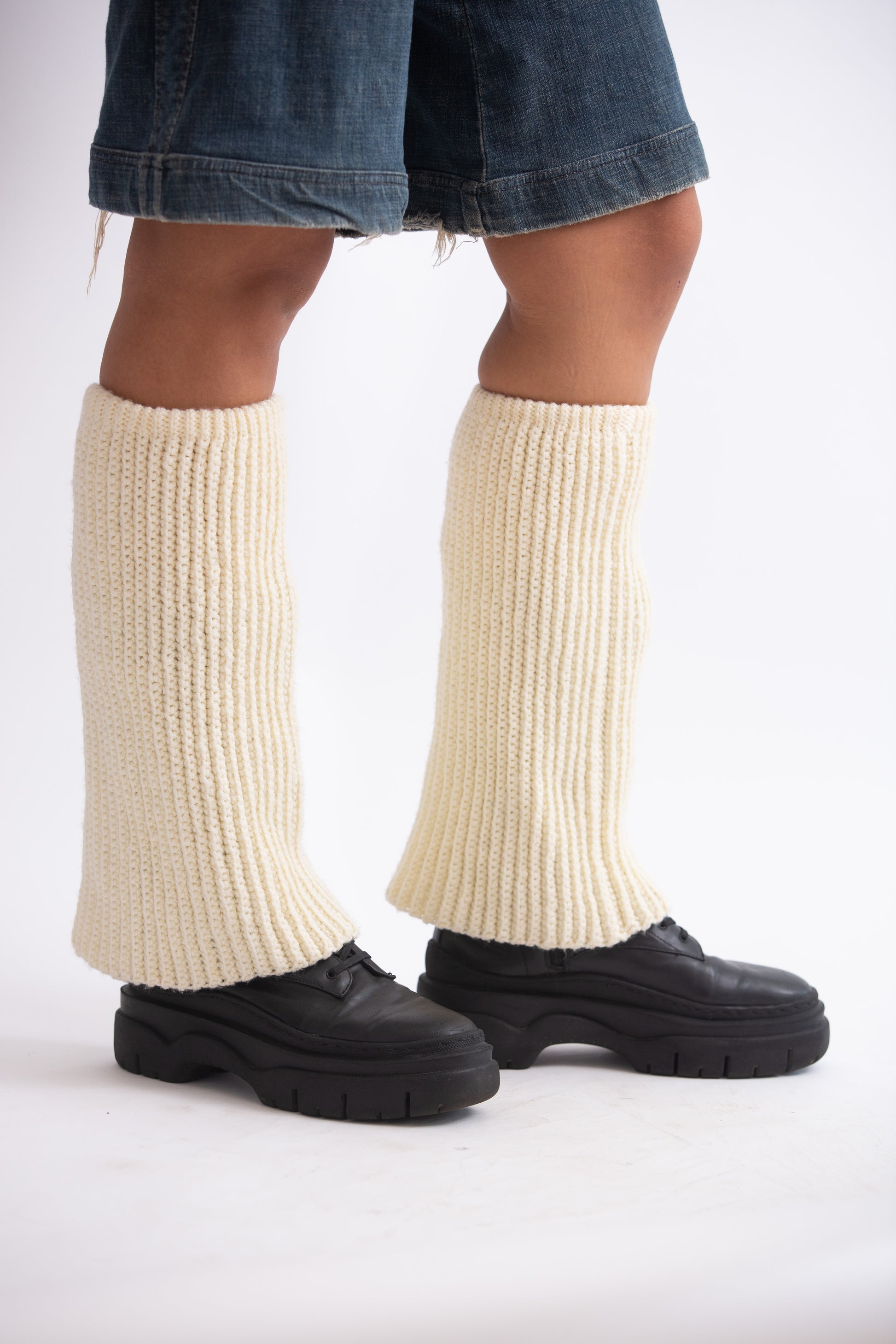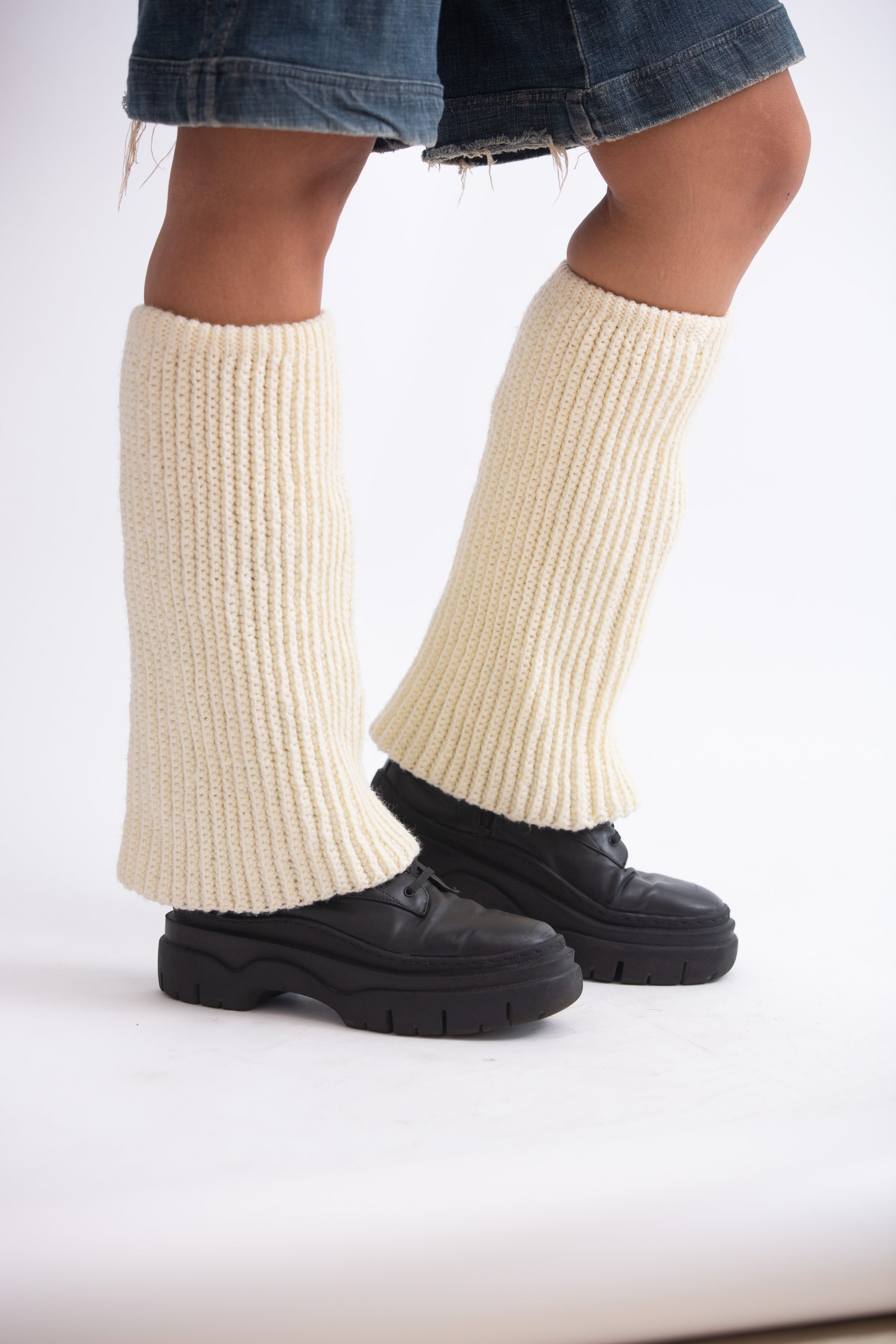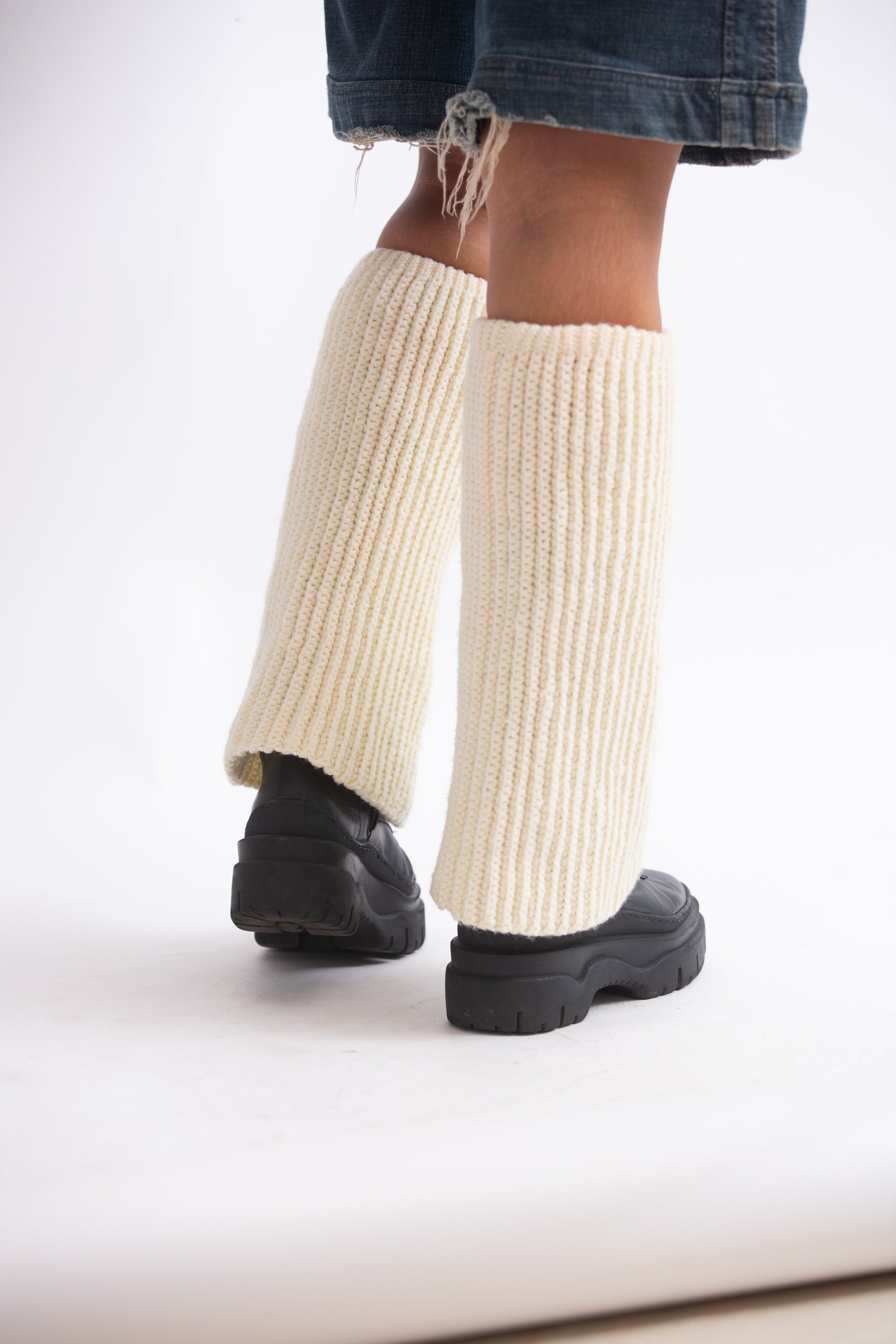 Cream coloured leg warmer.