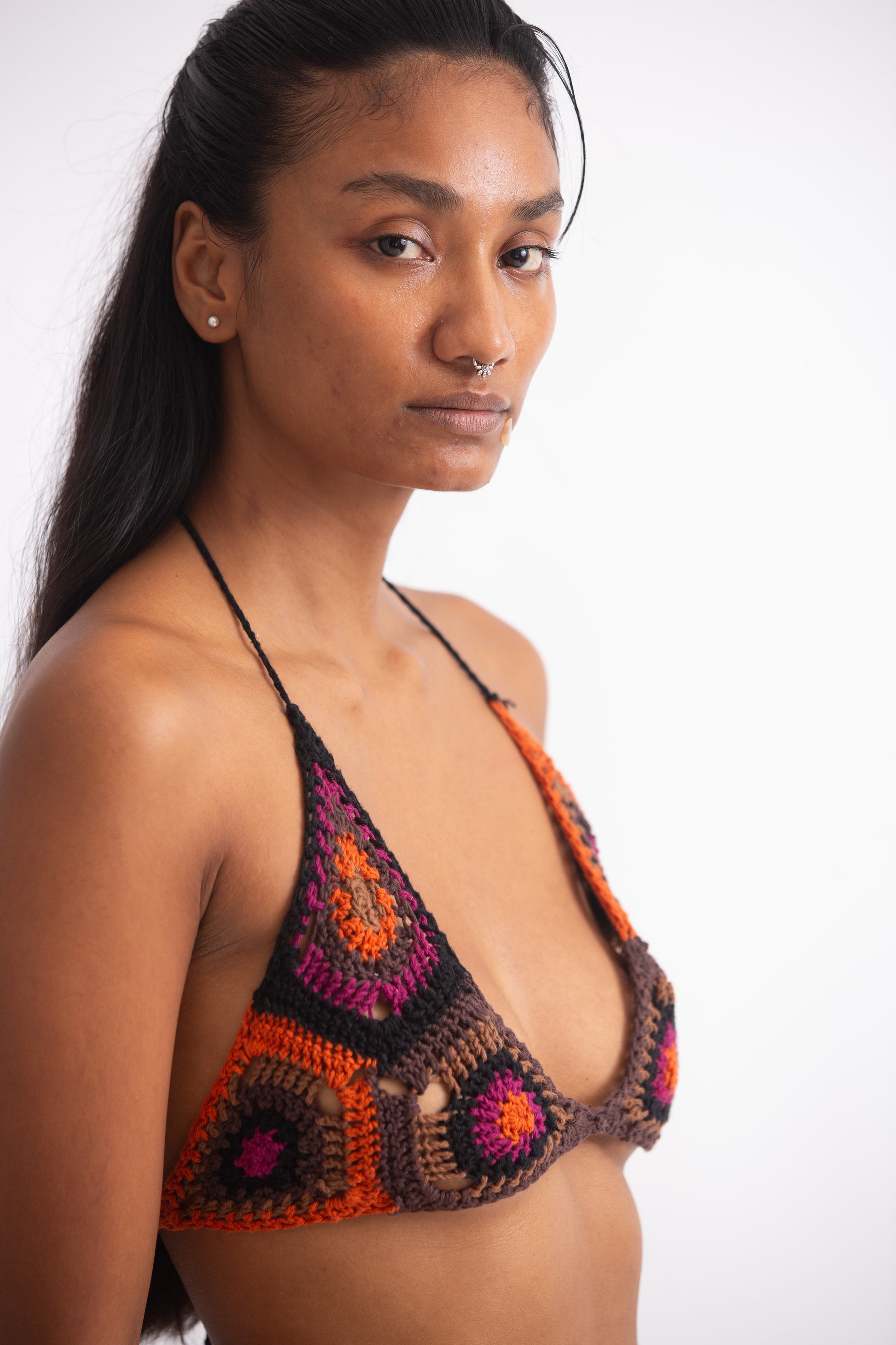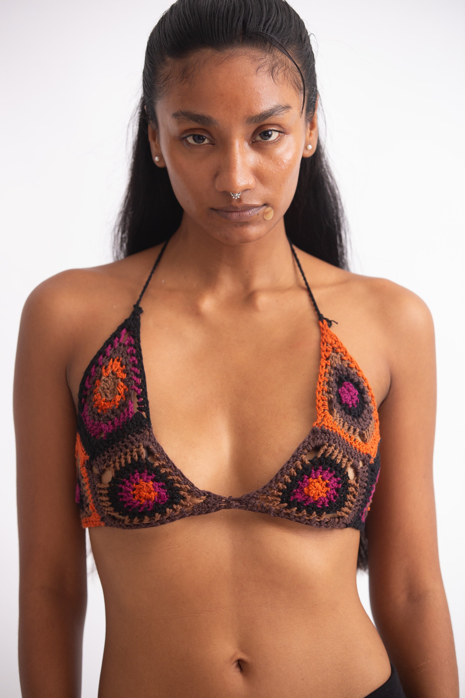 Granny square bralette with tie details.